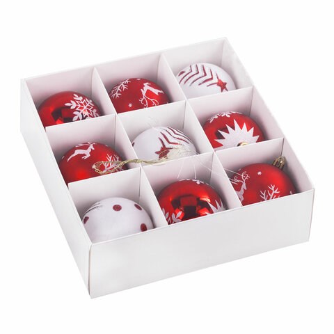 Шары ёлочные 9 шт., 8 см, "Русская Зима", пластик, цвет: красный/белый, ЗОЛОТАЯ СКАЗКА, 591986
