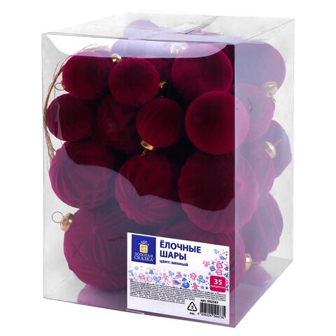 Шары елочные НАБОР 35 предметов, "Гранат", пластик, софт-тач, винный, ЗОЛОТАЯ СКАЗКА, 592587