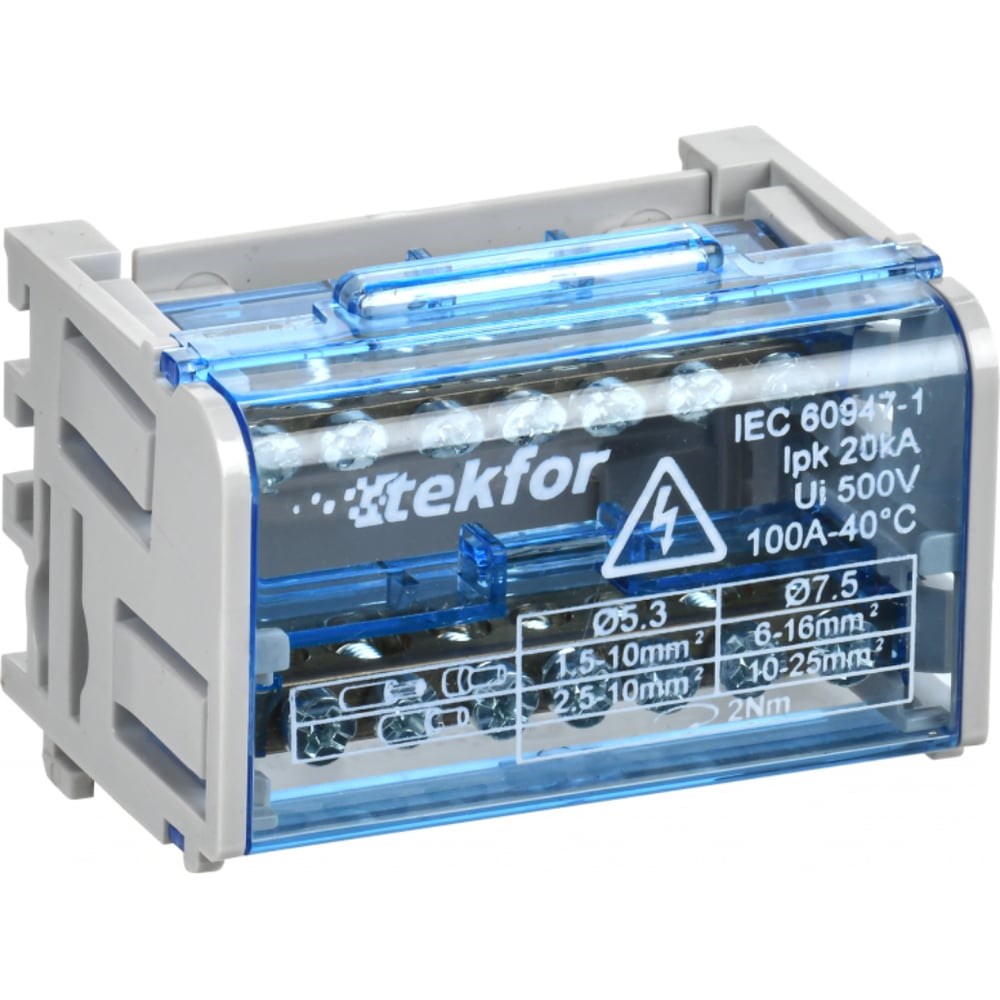 Кросс-модуль IEK TEKFOR изготавливается с двумя или четырьмя шинами, рассчитанными на токи до 100 А и 125 А. Шины выполнены из высококачественной латуни с содержанием меди не менее 58%. Они позволяют удобно и надежно производить соединения в электрических распределительных щитах, так как монтаж посредством винтов исключает вероятность некачественного или неплотного соединения проводов.