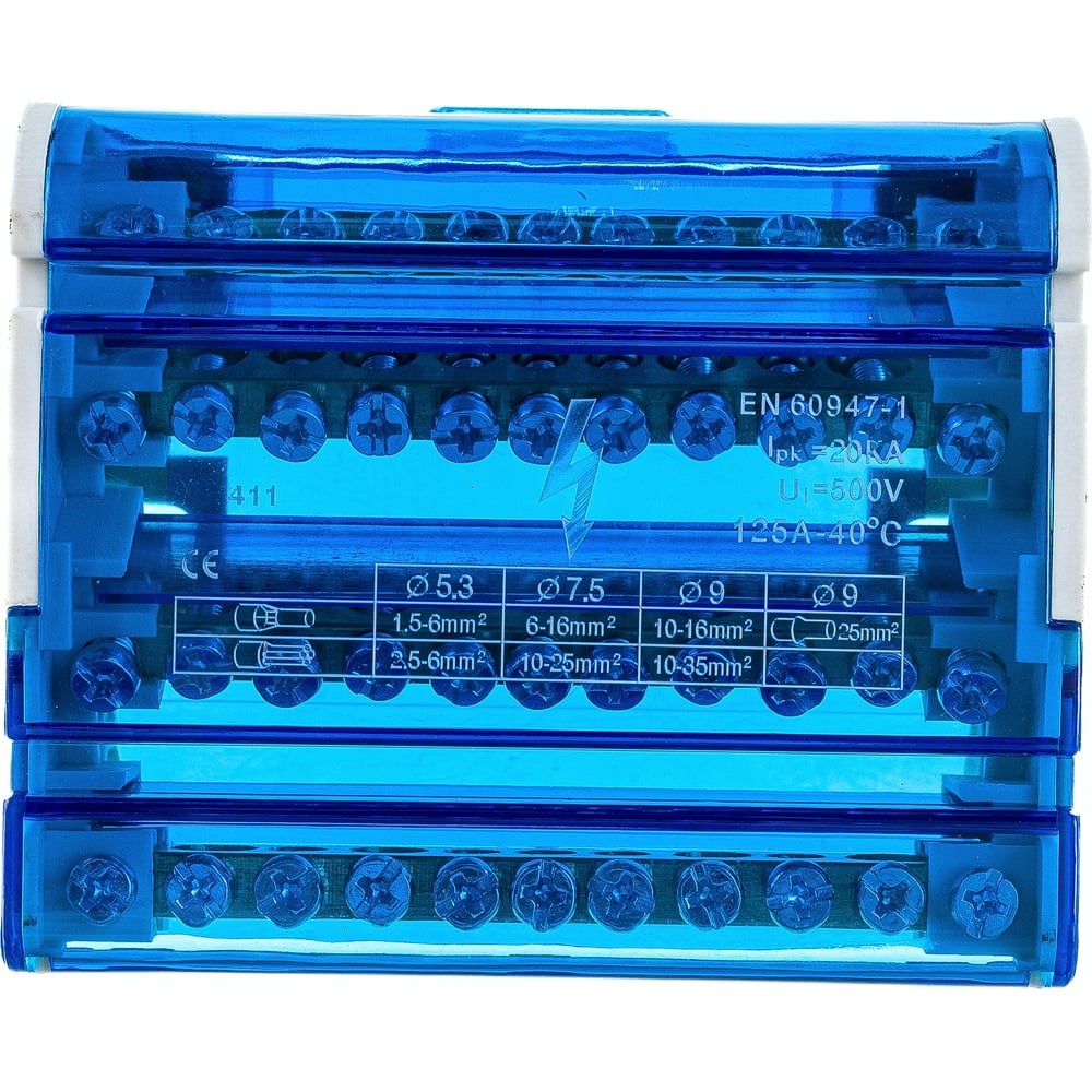 LD505-411 Шины на DIN-рейку в корпусе (кросс-модуль) 4 шины по 11 контактов (3L+PEN) применяются в щитовом оборудовании для подсоединения нулевого провода, провода заземления и фазных проводников. Контактная группа шин изготовлена из латуни с содержанием меди не менее 57%. Изолирующая панель и защитная крышка выполнены из самозатухающего пластика. Прижимные винты из аннодированной стали. При подключении к шине медных многожильных проводов необходимо оконцовывать их наконечниками-гильзами. Кросс модули изготавливаются с двумя или четырьмя шинами, которые имеют отверстия различного диаметра и рассчитаны на токи до 100 и 125А. Шины закреплены в корпусе, который имеет возможность крепления на DIN-рейку 35мм или на монтажную панель щита с помощью двух винтов.