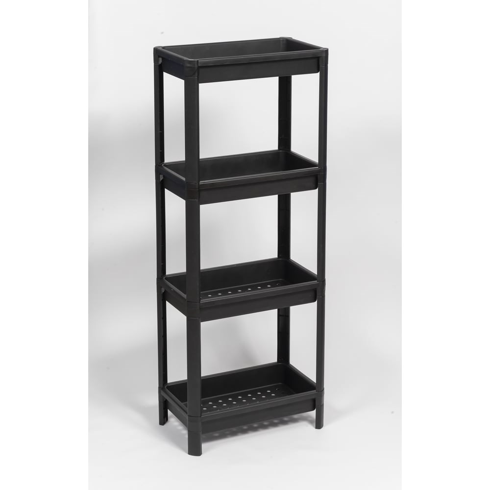 Этажерка Violet VIKEA широкая, 4-х ярусная, черная 781407 – идеальное решение для организации пространства на кухне и в ванной, в гостиной и на балконе, а также в любом другом помещении. Прекрасно впишется в пространство любой комнаты. Состоит из нескольких ярусов. Имеет оптимальное расстояние между полками. Это позволяет разместить все самые необходимые полезные в хозяйстве мелочи. Стойки надежно соединяются внутренним замком, что обеспечивает монолитность конструкции и дает возможность поднять и переместить этажерку за верхнюю полку. Каркас этажерки выполнен из прочного пластика и не прихотлив в уходе. Достаточно протереть влажной тряпкой или промыть под струей теплой воды. Изделие безопасно, не имеет острых углов и изготовлено из экологичного материала, не содержащего бисфенол А и предназначенного для контакта с пищевыми продуктами. Изделие поставляется в разобранном виде в индивидуальной коробке.
