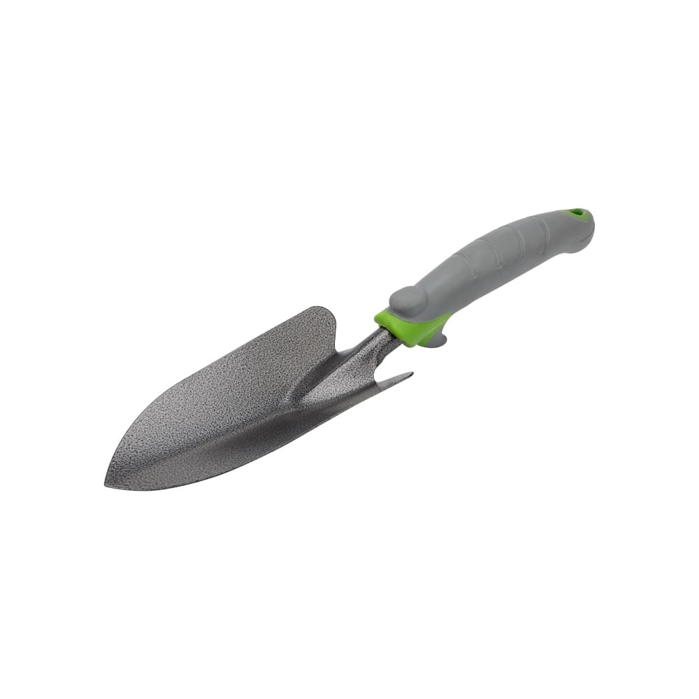 Широкий стальной посадочный совок с прорезиненной ручкой Четыре сезона 64-0002 – компактный и удобный в саду инструмент для посадки растений и обработки почвы на клумбах и грядках. Прорезиненная ручка и удобный упор позволяют комфортно пользоваться даже несколько часов подряд. Углеродистая сталь обеспечивает долговечное использование даже при работе с каменистой почвой. По окончании использования рабочую часть инструмента необходимо очистить от остатков грунта.