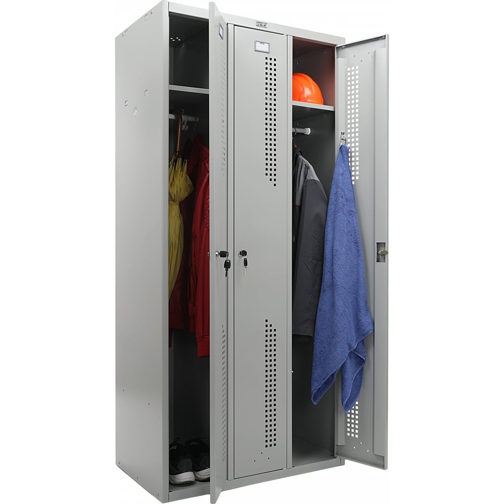 Шкаф для раздевалок ПРАКТИК LS/LE-31 S23099531102 - идеальное решение при обустройстве мест хранения в подсобных производственных помещениях, а также в спортивных центрах самого различного масштаба. Представляет собой 3 секции, объединенные одним высокопрочным металлическим корпусом. В каждой секции предусмотрены 2 отделения: большое - для вешалок с одеждой, маленькое - для других личных вещей.