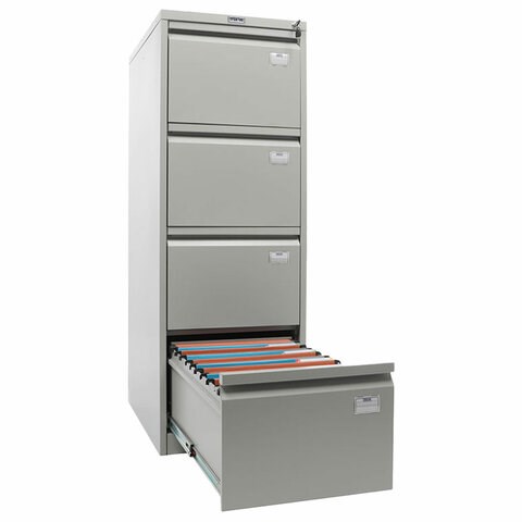 Шкаф картотечный ПРАКТИК "AFC-04", 1320х470х646 мм, 4 ящика, для 220 подвесных папок, формат папок Foolscap или A4 (БЕЗ ПАПОК)