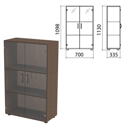 Шкаф закрытый со стеклом "Канц", 700х335х1130 мм, цвет венге (КОМПЛЕКТ)