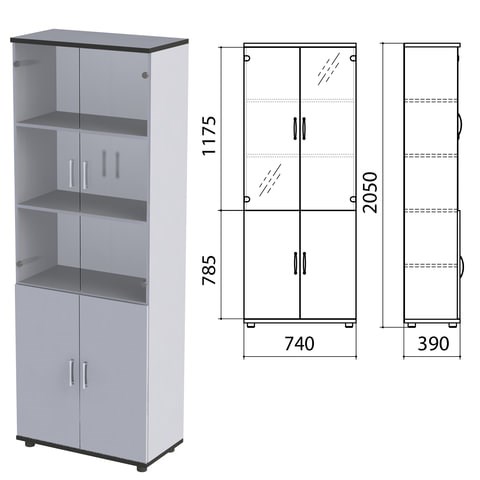 Шкаф закрытый со стеклом "Монолит", 740х390х2050 мм, цвет серый (КОМПЛЕКТ)