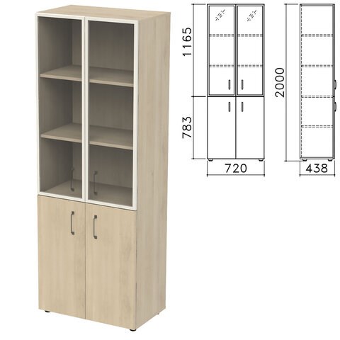 Шкаф закрытый со стеклом в алюминиевой рамке "Приоритет" 720х438х2000 мм, 4 полки, кронберг (КОМПЛЕКТ)