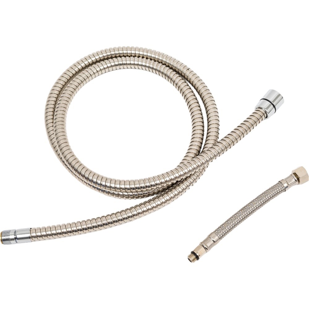 Шланг для кухонного смесителя с выдвижной лейкой предназначен для подачи воды из смесителя в выдвижную лейку и представляет собой гибкую полимерную трубку, помещенную в металлическую оплетку. Шланг для душа имеет металлические гайки с обеих сторон для стационарного крепления шланга к смесителю с одной стороны и выдвижной лейке с другой стороны. Комплектуется переходником размером 3/8". Материал изготовления – полимер и металл.