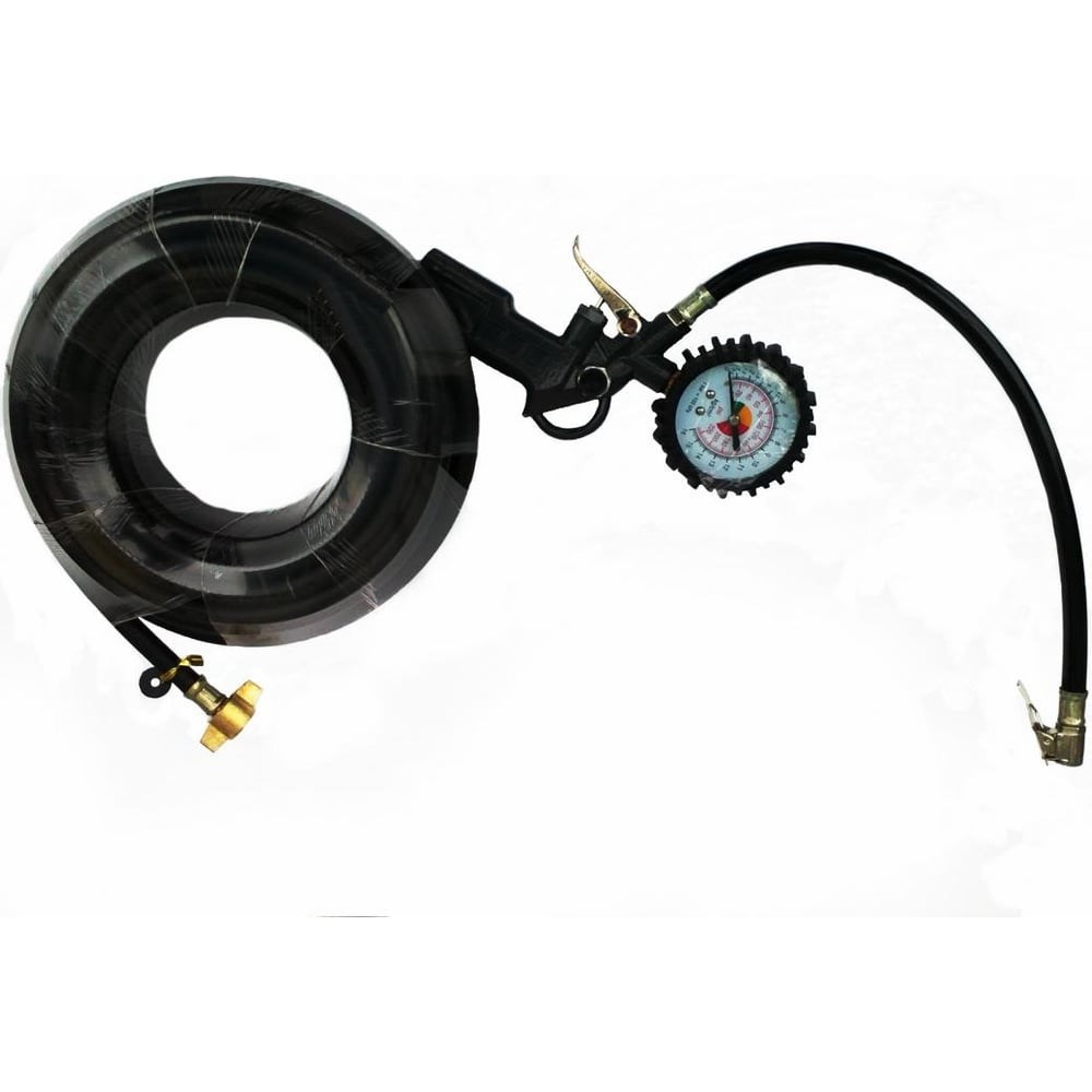 Шланг подкачки колес с манометром и пистолетом Дали-Авто изготовлен из высококачественного армированного кислородного шланга длиной 16 м с рабочим давлением до 20 атм.