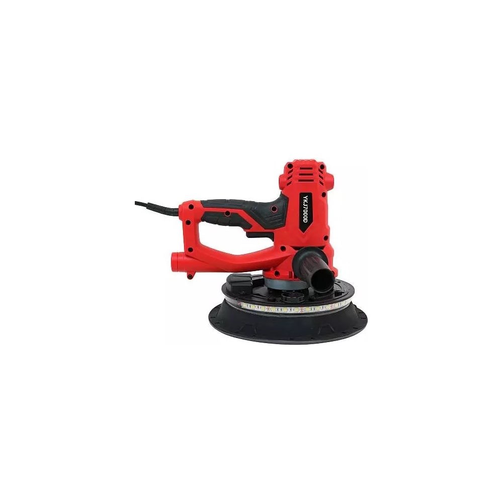 YKJ7000D - шлифовальная машинка для сухой штукатурки. Разработана для шлифовки стен и потолков из гипсокартона и сухой штукатурки, а также для полировки деревянных поверхностей. Шлифовальная машинка обеспечивает качественную отделку и дает более быстрый результат, чем традиционные методы окончательной отделки при новом строительстве и при работах по реконструкции. шлифовка углов на 360°; фактический диаметр диска 210 мм, допустимый диаметр абразива - 225 мм; светодиодная подсветка позволяет вести шлифовку при плохом освещении; минимум пыли при шлифовке; высокое качество выполнения операций; длительный срок эксплуатации.