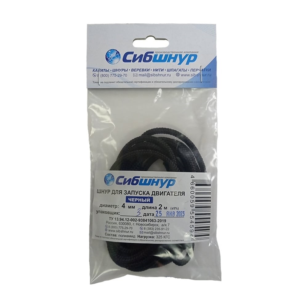 Шнур для запуска двигателя СИБШНУР д 4 мм, 2 м, черный 20585