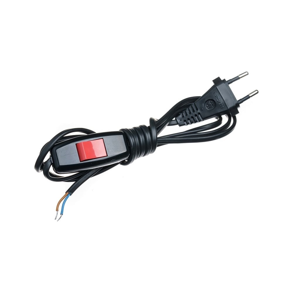 Сетевой шнур СПб УПП-5 с вилкой и проходным выключателем LEZARD, Красная кнопка, ШВВП, 2x0,5 черный 1,7м 99928668