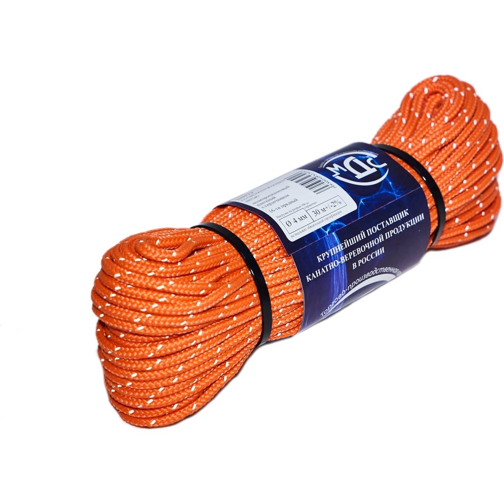 Шнур полипропиленовый плетеный, ТОРГОВО-ПРОИЗВОДСТВЕННАЯ КОМПАНИЯ МДС, 4мм 16пр. с сердечником со светоотражающей нитью 30м 7930050323053 на 100% состоит из полипропилена, с добавлением светоотражающей полосы, которая хорошо видна при попадании на нее даже слабого света в условиях плохой видимости. Изготовление из первичного сырья и использование сердечников из крученых нитей, позволяет изделию держать нагрузки в двое превышающие аналоги существующие на рынке. В процессе изготовления нитки, используются качественные красители и стабилизаторы, светоотражающая полоса, благодаря которой шнур мгновенно видно при ночном освещении, что в свою очередь делает веревку не только прочной, но и устойчивой к кислотам и ультрафиолету, позволяет не впитывать влагу, что очень удобно при использовании ее на воде. Шнур из полипропилена со светоотражающей нитью широко применяется абсолютно в любой сфере учитывая разрывные характеристики. Разрывная нагрузка - 300 кг. справочно. Внимание! Цвет товара может отличаться от представленного на фотографии.
