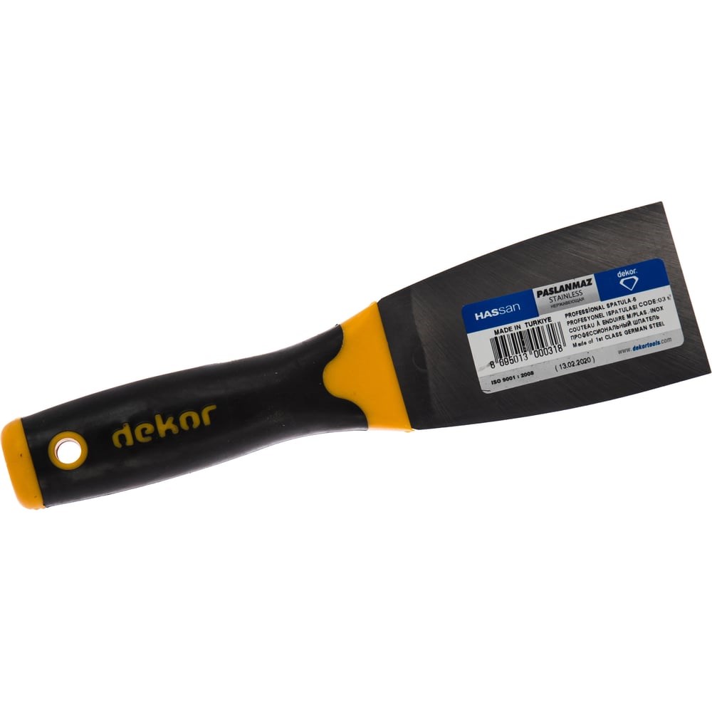 Шпатель нержавеющая сталь DEKOR 60 мм ручка с эластомерным покрытием 031 Professional удобен в использовании. Изготовлен из гибкой нержавеющей стали с переходящей толщиной. Прочный фиберглас надежно удерживает полотно.