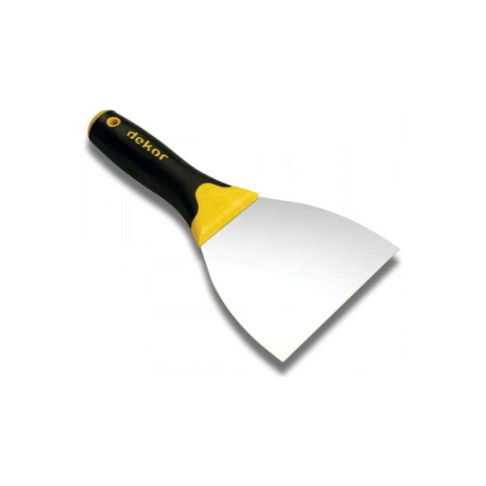 Шпатель нержавеющая сталь DEKOR 110 мм ручка с эластомерным покрытием 035 удобен в использовании. Прочный фиберглас надежно удерживает полотно. Использована гибкая сталь первого класса.