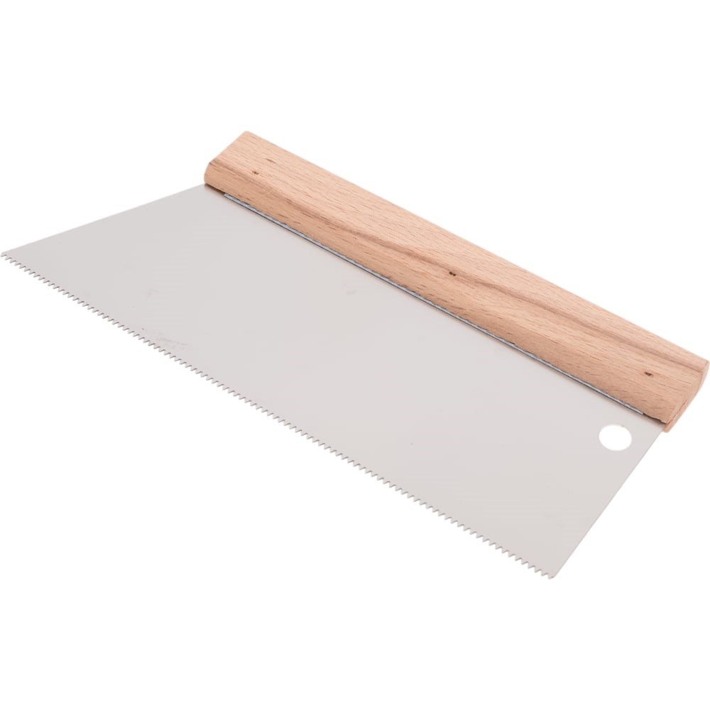 Предназначен для нанесения клеевых материалов на основание при укладке напольных покрытий. Материал ручки: массив бука;x000D Форма зубьев: треугольные;x000D Размер зубьев: 2,5 x 2 мм;x000D Ширина лезвия: 250 мм.