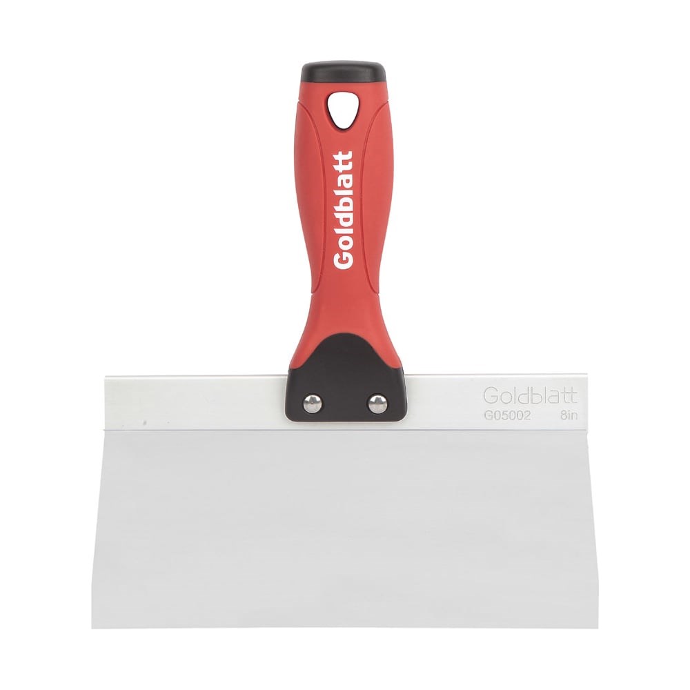 Шпатель из нержавеющей стали для шпатлевки и швов с мягкой рукояткой оснащен лезвиями из пружинной стали премиум-класса с полой заточкой. Это обеспечивает надлежащую гибкость для идеальной финишной обработки. Шпатель позволяет с легкостью наносить составы или сглаживать и проклеивать швы гипсокартона. Удобная мягкая ручка снижает усталость. Дополнительный прочный наконечник-молоток для забивания гвоздей и шурупов.