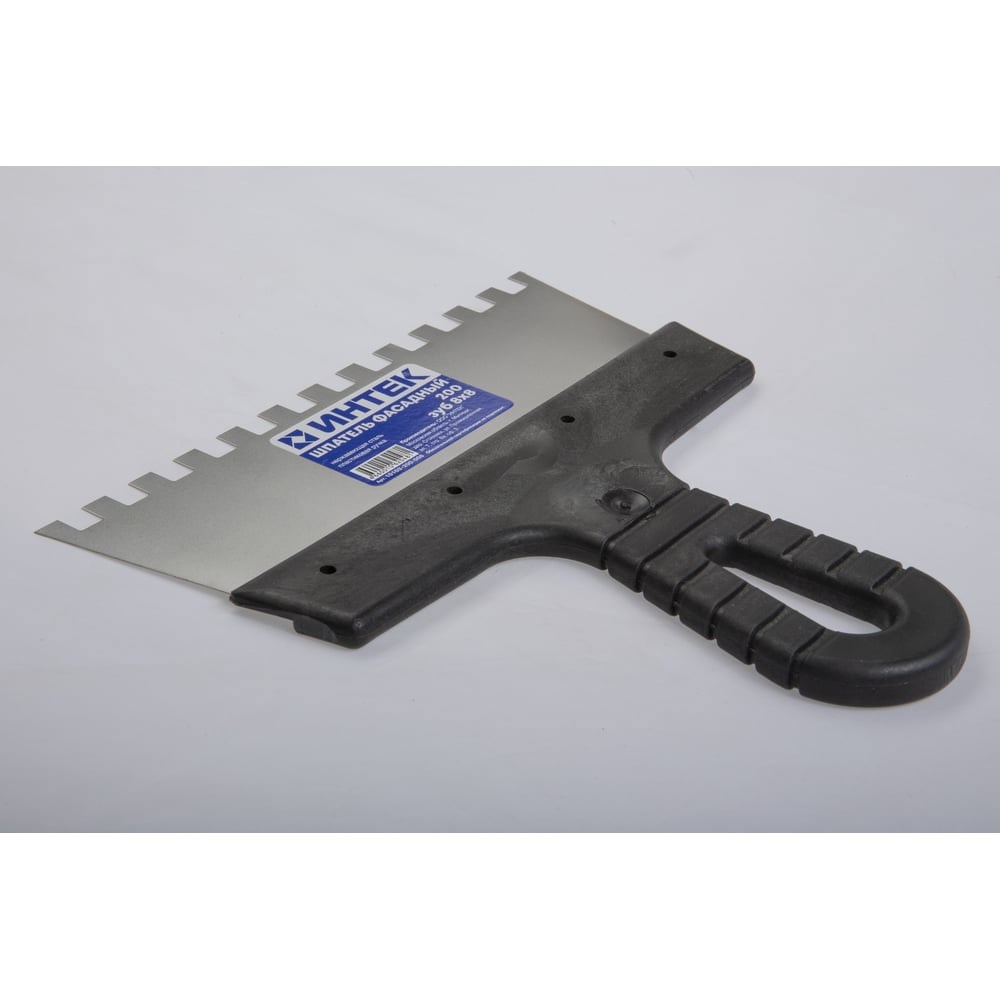 Фасадный шпатель ИНТЕК 200 мм, зуб 8х8, с пластиковой ручкой, нержавеющая сталь 8976 используется для нанесения и выравнивания клеевых и штукатурных составов на поверхности большой площади. Инструмент оснащен эргономичной пластмассовой ручкой, что обеспечивает надежный захват инструмента и возможность продолжительной работы без усталости рук. Полотно шпателя выполнено из высоконагартованной нержавеющей стали толщиной 0,4 мм, 1500н/мм. Сталь данной марки обладает улучшенными механическими свойствами, исключающими деформацию полотна в процессе работы.