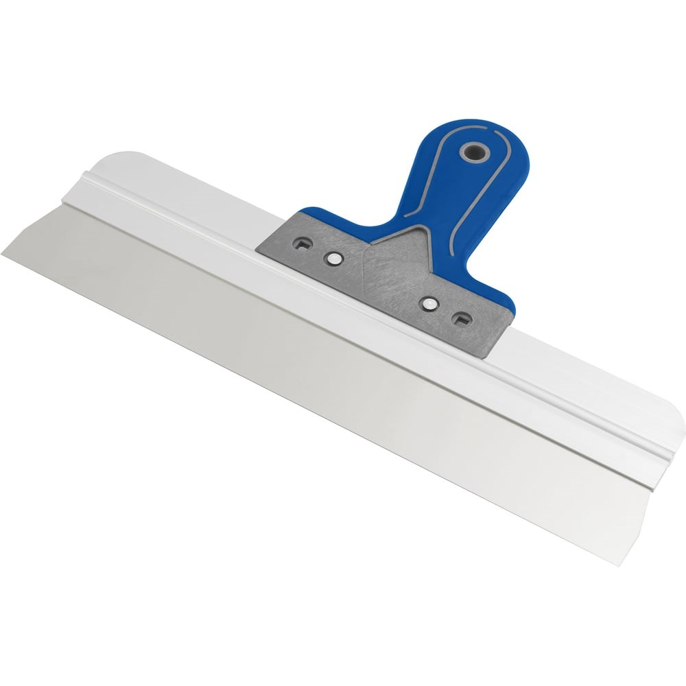 Шпатель предназначен для нанесения и выравнивания штукатурной смеси или шпаклевочного состава при проведении работ по отделке фасадов и интерьеров. Его рабочая часть изготовлена из нержавеющей стали, что обеспечивает прочность и защиту от коррозии. Благодаря наличию алюминиевой направляющей исключен изгиб полотна. Обрезиненная двухкомпонентная рукоятка не скользит в руке, обеспечивая надежный захват. Отверстие в рукоятке позволяет удобно расположить инструмент на хранение.