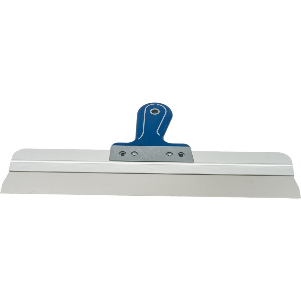 Шпатель предназначен для нанесения и выравнивания штукатурной смеси или шпаклевочного состава при проведении работ по отделке фасадов и интерьеров. Его рабочая часть изготовлена из нержавеющей стали, что обеспечивает прочность и защиту от коррозии. Благодаря наличию алюминиевой направляющей исключен изгиб полотна. Обрезиненная двухкомпонентная рукоятка не скользит в руке, обеспечивая надежный захват. Отверстие в рукоятке позволяет удобно расположить инструмент на хранение.