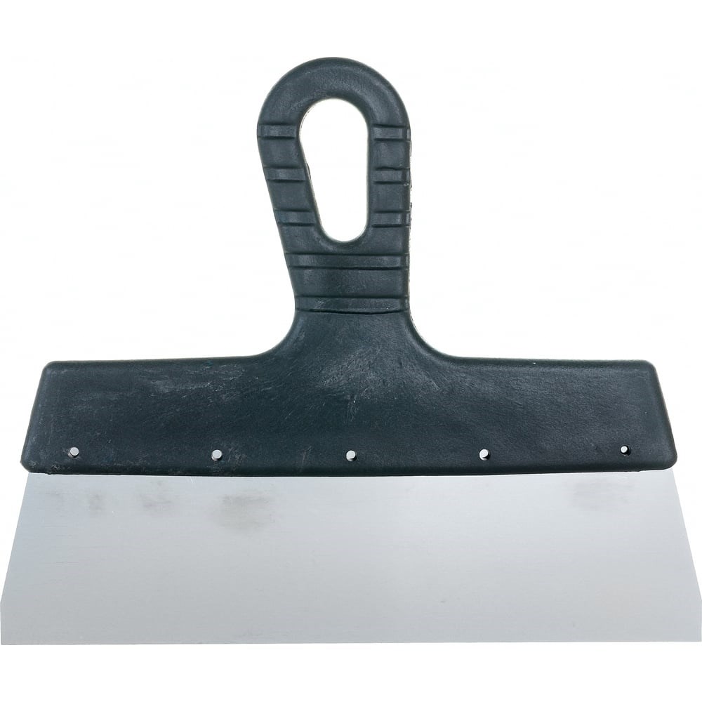 Шпатель РОКОТ металл (нерж.), пластиковая ручка 250 мм 683-137 пригодится для отделочных работ. Инструмент удобно держать за счет изогнутой рукоятки. Наличие гибкого нержавеющего лезвия существенно упрощает эксплуатацию. Металл не разрушается от воздействия химикатов.
