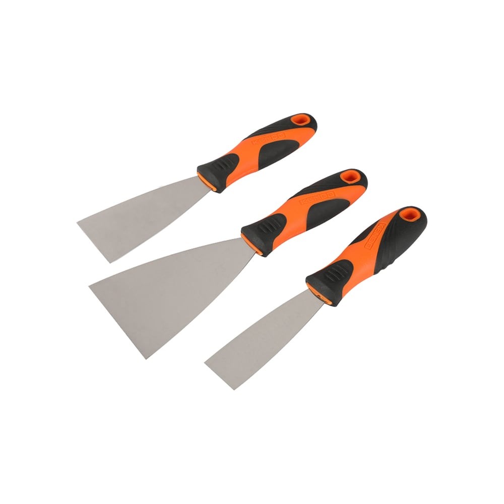 Набор скребков KENDO 3шт 85123 используется для очистки различных поверхностей от загрязнений, клея, краски. Скребки выполнены из качественного и прочного металла. Эргономичные рукоятки обеспечивают комфортную эксплуатацию. Накладки из термопластичной резины препятствуют скольжению.