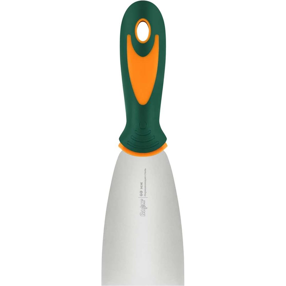 Шпатель предназначен для нанесения шпаклевки, зачистки обрабатываемой поверхности, отделения старых обоев, краски и штукатурки. Полированное полотно из нержавеющей стали с гибкой зоной отличается прочностью и долговечностью. Обрезиненная двухкомпонентная противоскользящая рукоятка обеспечивает комфортную работу.