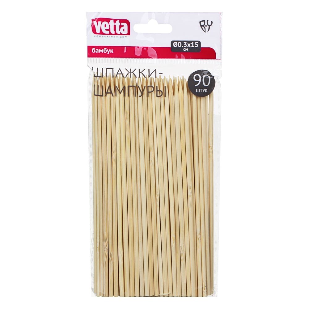 Шпажки-шампуры VETTA 90 шт., бамбук, 150х3 мм 437-210 подходят для приготовления пищи на открытом воздухе. Шампуры - незаменимые аксессуары для организации фуршета. Натуральный материал полностью безопасен для здоровья. Бамбук не меняет вкус продуктов, не впитывает запахи.