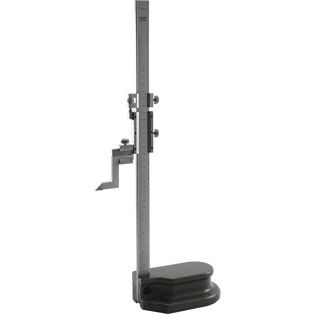 Штангенрейсмас типа ШР с отсчетом по нониусу предназначен для измерения и разметки размеров. Снятие показаний происходит по шкалам штанги и нониуса. Прибор состоит из основания, в котором закреплена штанга с рейкой, имеющей шкалу, и рамка с отсчетным устройством, перемещающаяся по штанге и несущая разметочную или измерительную ножки. Для облегчения установки на требуемый размер рамка снабжена микрометрической подачей. Материал изготовления – инструментальная сталь. Разметочная ножка оснащена твердосплавным наконечником.Обратите внимание! Внешний вид модели может отличаться от представленного на фото.
