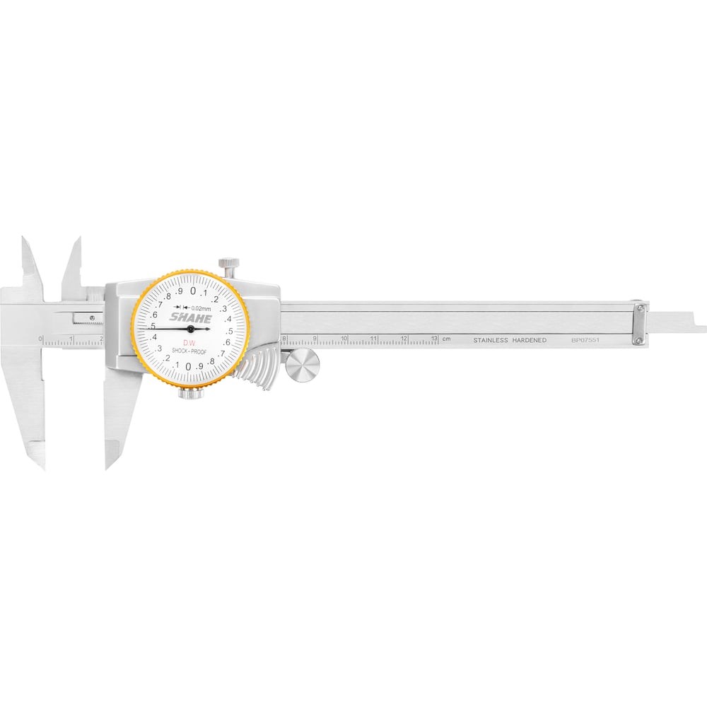 Штангенциркуль ШЦК-1-125 0,02 с круг. шкалой губ. 40мм SHAHE – специальный тип профессионального измерительного устройства, позволяющий быстро и с высокой точностью измерить длину, внутренние и наружные диаметры, глубину отверстий, а также линейные размеры малогабаритных деталей.Основным элементом штангенциркуля является прочная и износостойкая конструкция из качественной стали, на ней расположены две губки. На подвижной губке закреплена круговая шкала, благодаря которой нет необходимости рассчитывать дополнительную шкалу по нониусу. Гарантируется плавность работы, стабильность и достоверность снимаемых замеров.Рекомендуем регулярно удалять пыль и другие загрязнения с поверхности прибора сухой чистой тканью, избегать повреждений элементов штангенциркуля, калибровать инструмент для получения более точных показаний. Следует правильно устанавливать устройство на измеряемый объект.Благодаря удобству и простоте в использовании штангенциркуль ШЦК с круговой шкалой широко применяется в различных сферах. Он незаменим при контроле размеров отверстий и диаметров, калибровке инструментов, а также используется в машиностроении.