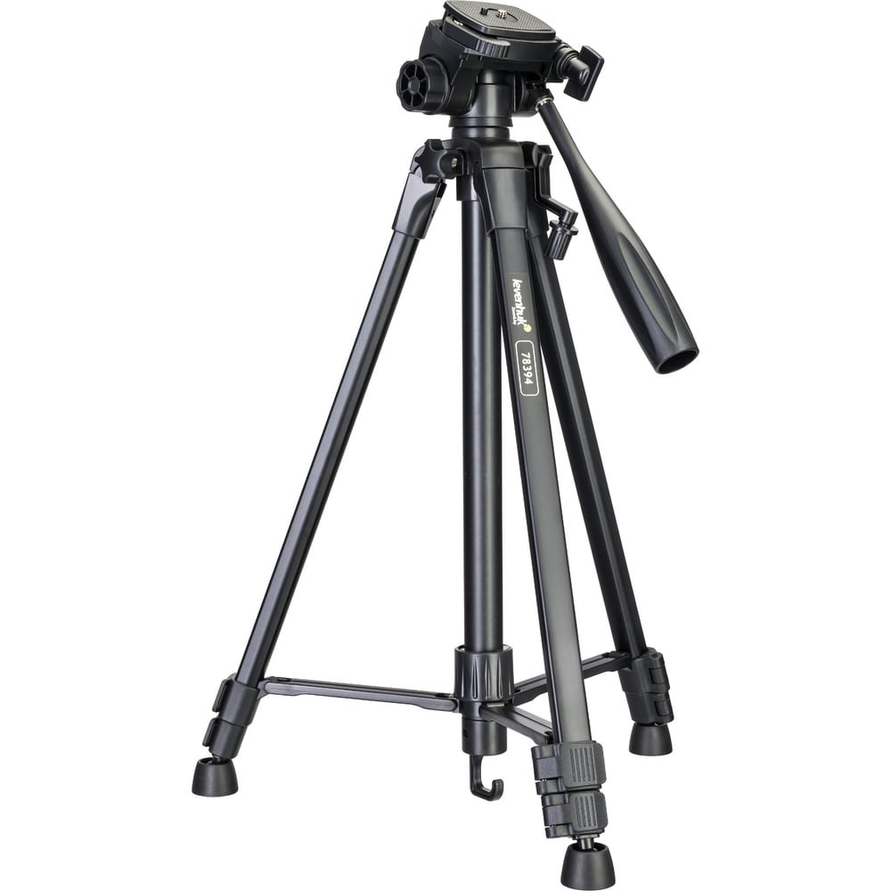 Штатив Levenhuk Level BASE TR20 78394 предназначен для установки техники с креплением 1/4 дюйма. На нем можно фиксировать фото- и видеокамеры, оптические приборы, проекторы, осветители и даже смартфоны. Для установки некоторых из них может понадобиться адаптер-переходник (нет в комплекте). Штатив сделан из металла, долговечен, надежен и достаточно компактен в сложенном состоянии. Это хороший вариант для путешествий и загородных поездок. Штативная головка может поворачиваться на 360° по горизонтали, а также вверх и вниз. Для управления ею используется удобная ручка. Установочная площадка сконструирована таким образом, что технику очень легко быстро крепить и снимать. Если ослабить фиксатор площадки, ее можно будет откинуть вбок на угол до 90°. Фиксаторы также есть на горизонтальной и вертикальной осях. Чтобы отрегулировать высоту штатива, можно или поднять центральную штангу, или выдвинуть ножки. Удобно, что на ножках используются флип-замки для быстрой фиксации положения. На центральной штанге есть крюк, на который можно вешать утяжелитель для повышения устойчивости конструкции. Но нужно помнить, что максимальная нагрузка на штатив ограничена 5 кг. Также удобно, что есть пузырьковый уровень, помогающий устанавливать штатив максимально ровно в любых условиях. В комплектацию включен чехол для хранения и транспортировки штатива.