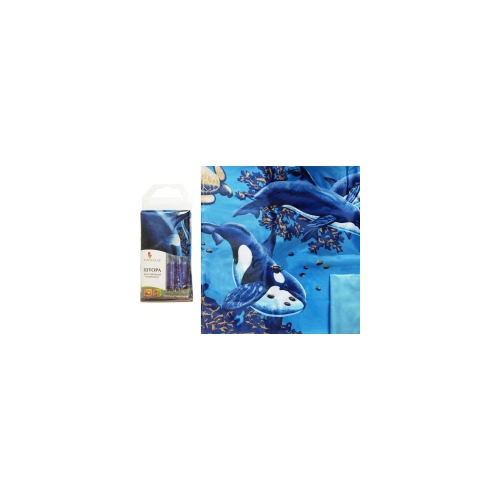 Штора для ванной EUROHOUSE Киты и черепахи с кольцами, 180х180 см, тип плетения нитей сатин 4833