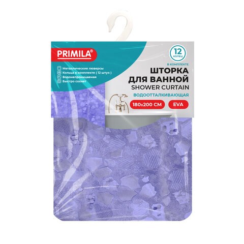 Шторка для ванной PRIMILA изготовлена из качественного, практичного, износостойкого, абсолютно нетоксичного материала EVA, что гарантирует отсутствие заломов и водонепроницаемость. Быстро сохнет, не шуршит, без запаха и приятная на ощупь. Шторка максимально проста в уходе - достаточно протереть ее влажной губкой. В комплекте со шторкой идут 12 прочных полипропиленовых колец, которые подойдут под любой тип карниза.