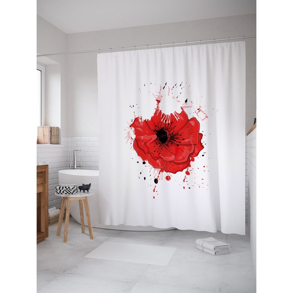 Штора (занавеска) для ванной JoyArty "Акварельный мак" из сатена, 180х200 см с крючками, sc_53360 пошитая из полиэстера, выгодно отличается красивым внешним видом, прочностью и длительным сроком службы. Водонепроницаемая ткань плотностью 80 г/м2 украшена стильным разноцветным принтом - нанесенная краска не боится контакта с горячей водой и не выцветает с течением времени. В комплект шторы для ванной размером 180х220 см входит 12 крючков, для которых уже подготовлены все нужные отверстия. Стиль: цветочный. Принт: Акварельный мак. Цвет: черный, красный, серый. Рисунок: цветы и растения. Теги: мак, цветок, цветы, стебель, цветение, лепестки. При покупке нужно учесть, что фактический размер изделия может отличаться от заявленного в пределах не более 5 см.