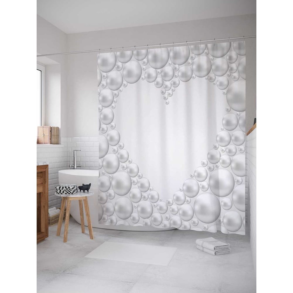 В отличие от подобных изделий из ПВХ и силикона, занавеска в ванную, пошитая из полиэстера, выгодно отличается красивым внешним видом, прочностью и длительным сроком службы. Водонепроницаемая ткань плотностью 80 г/м2 украшена стильным разноцветным принтом - нанесенная краска не боится контакта с горячей водой и не выцветает с течением времени. В комплект шторы для ванной размером 180х220 см входит 12 крючков, для которых уже подготовлены все нужные отверстия. Стиль: модерн. Принт: Сердце из пузырей. Цвет: серебристый, серый. Рисунок: камень. Теги: жемчуг, сердечко, круги, камни. При покупке нужно учесть, что фактический размер изделия может отличаться от заявленного в пределах не более 5 см.
