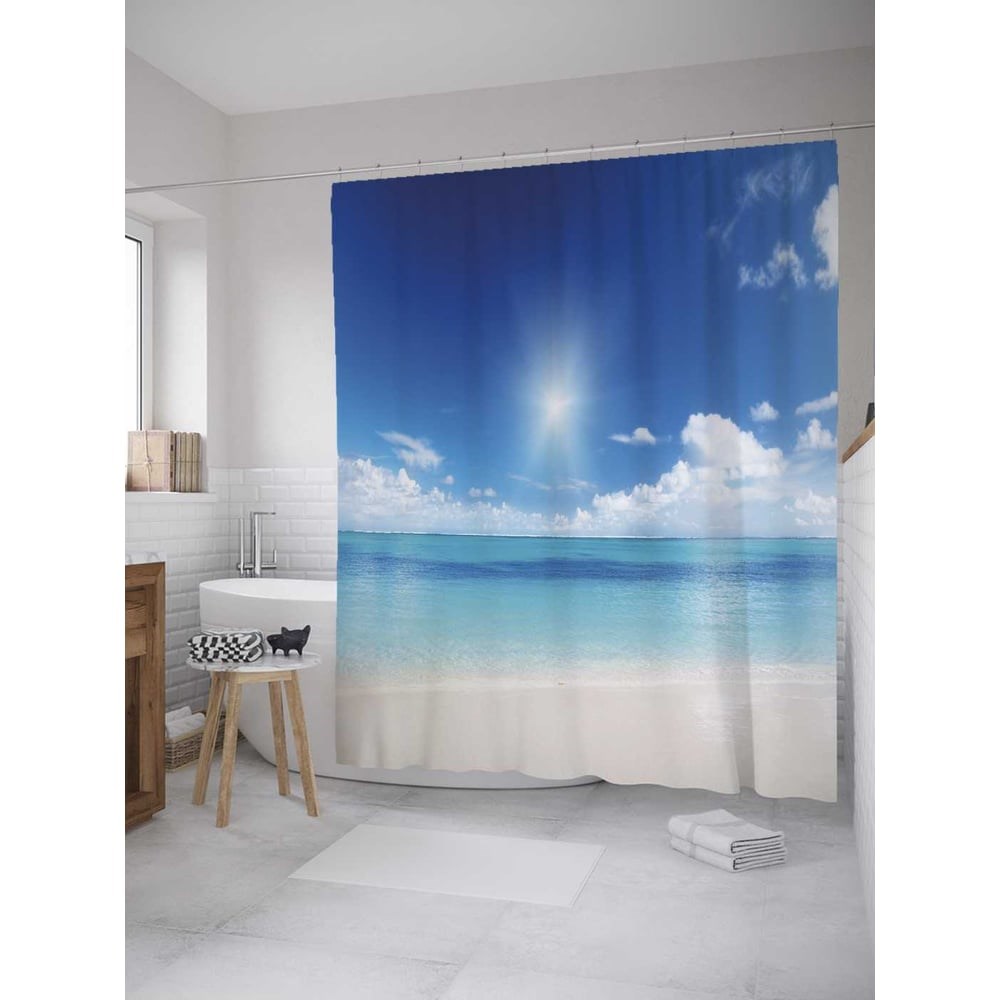 Шторка-занавеска для ванной JoyArty Яркое солнце над морем