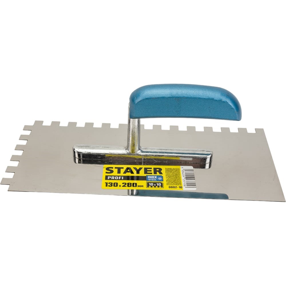 Гладилка Stayer Profi штукатурная, 130x280 мм, 10x10 мм, зубчатая, нержавеющая сталь 0802-10