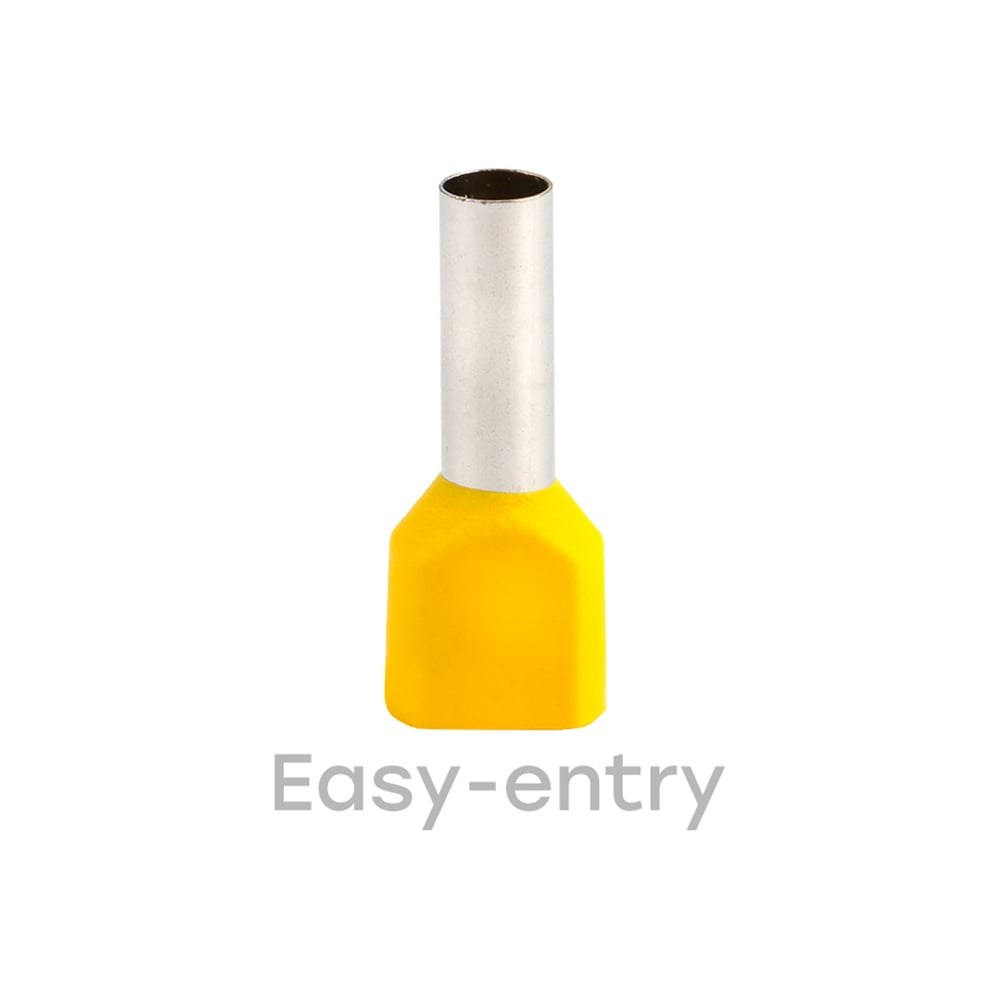 Двойные втулочные наконечники НШвИ2 EKF PROxima являются единственными специально разработанными наконечниками под опрессовку, которые полностью заменяют обязательный процесс облуживания многопроволочных медных проводов (типа ПВ-3, ПВС и т. п.) при монтаже различного электрооборудования. Втулочные наконечники состоят из медной луженой трубки, один конец которой развальцован для облегчения ввода многожильного провода и изолирующей манжеты из полипропилена. Технология Easy Entry для легкого монтажа.
