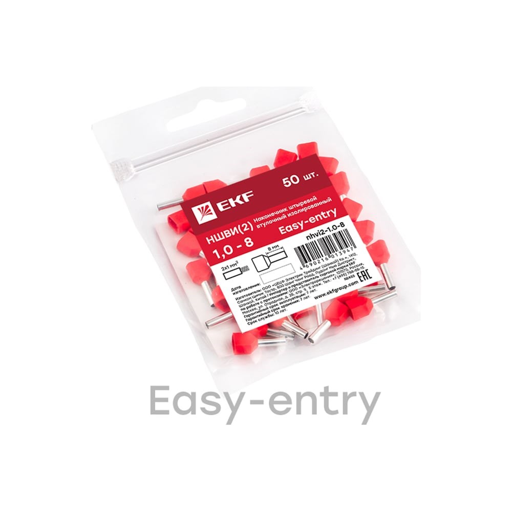 Двойные втулочные наконечники НШвИ2 EKF PROxima являются единственными специально разработанными наконечниками под опрессовку, которые полностью заменяют обязательный процесс облуживания многопроволочных медных проводов (типа ПВ-3, ПВС и т. п.) при монтаже различного электрооборудования. Втулочные наконечники состоят из медной луженой трубки, один конец которой развальцован для облегчения ввода многожильного провода и изолирующей манжеты из полипропилена. Технология Easy Entry для легкого монтажа.