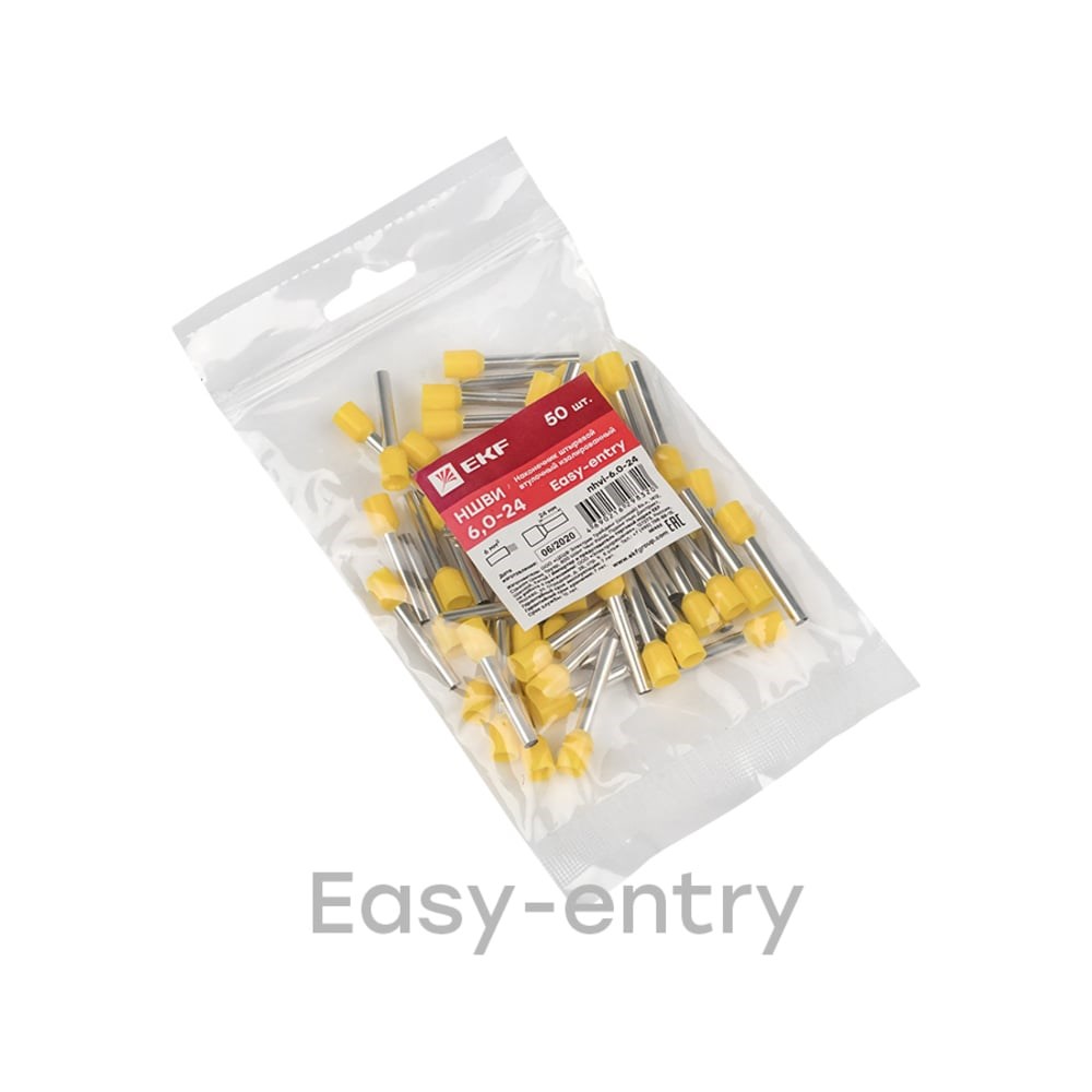 Одинарные втулочные наконечники НШвИ EKF PROxima являются единственными специально разработанными наконечниками под опрессовку, которые полностью заменяют обязательный процесс облуживания многопроволочных медных проводов (типа ПВ-3, ПВС и т. п.) при монтаже различного электрооборудования. Втулочные наконечники состоят из медной луженой трубки, один конец которой развальцован для облегчения ввода многожильного провода и изолирующей манжеты из полипропилена. Технология Easy Entry для легкого монтажа.