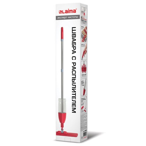 Швабра с распылителем оснащена емкостью объемом 700 мл для воды и моющих средств, что значительно облегчает процесс мытья полов. Распыление происходит при нажатии на ручку-дозатор. Насадка из микрофибры идеально удаляет загрязнения. Подвижное соединение ручки и держателя позволяет сделать уборку даже в труднодоступных местах.