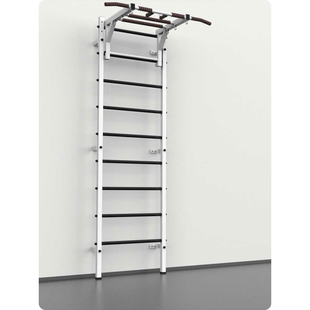 Шведская стенка с навесным оборудованием BARFITS Новичок 2.0, белый м126-1 предназначена для семейного спорта. Замечательный вариант для занятия дома, не требует много места. Выдерживают очень большие нагрузки и совершенно безопасна для детей. Специфика шведских стенок такова, что на них можно навешивать многие дополнительные спортивные аксессуары – турники, экспандеры, качели, канаты, брусья, доски для жима, скамейки, утяжелители и многие другие. В отличие от многих детских уголков, вы можете быть уверены, что ребенок сможет на ней заниматься с раннего возраста до зрелости и даже после.