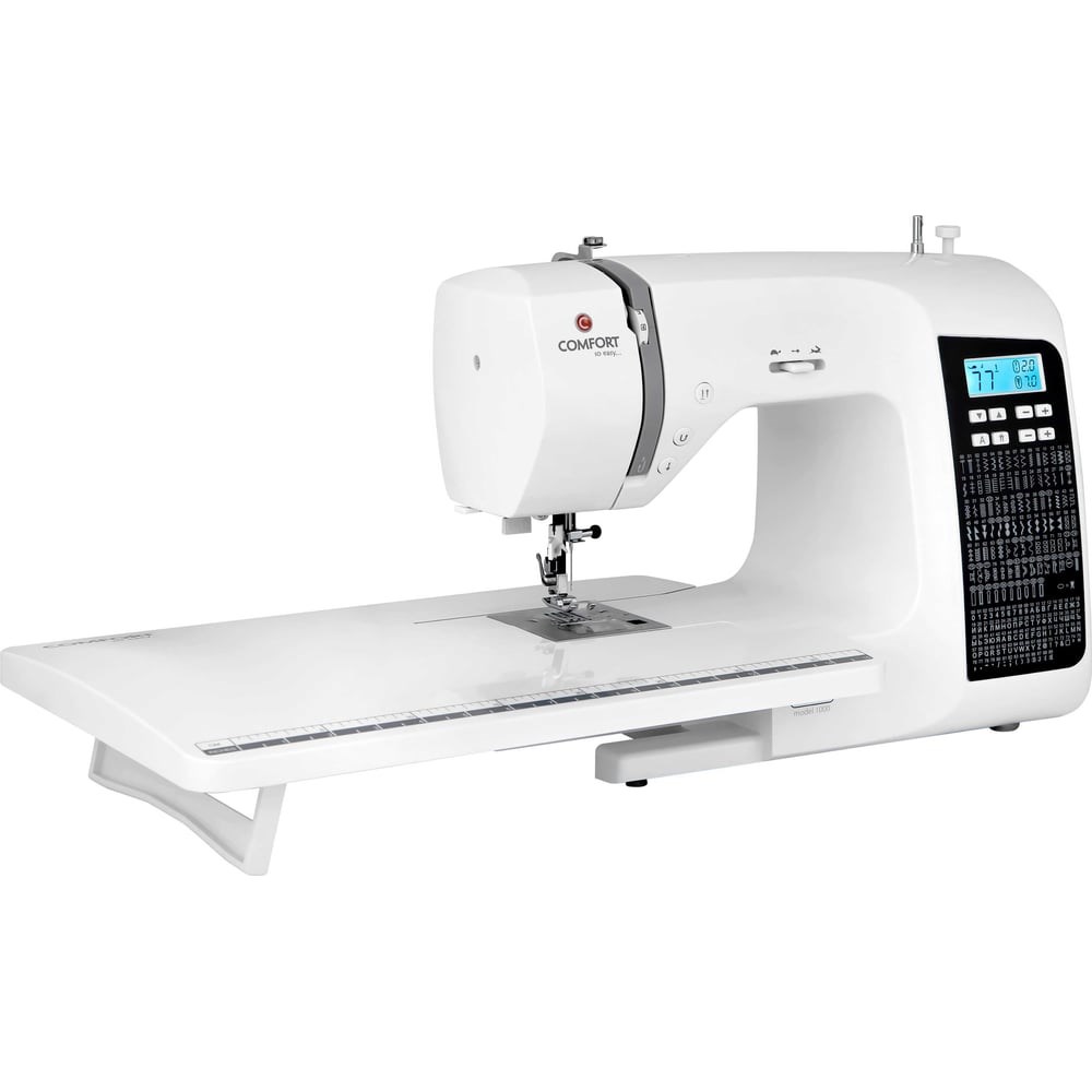 Электронная швейная машина имеет дополнительный регулятор скорости на корпусе машинки, помимо регулировки с помощью педали, что позволяет более плавно осуществлять управление скоростью и дает возможность с легкостью проходить сложные операции, как шитье из кусочков ткани - квилтинг и пэчворк, а также вшивание декоративной тесьмы и аппликации. Все эти направления очень модные сейчас среди мастеров, и без такого регулятора приходилось прокручивать маховик на сложных участках вручную. Также на новой модели установлена дополнительная кнопка , дающая возможность шить вообще без педали и в комплектацию добавлена двойная игла.С 2025 года все поставки комплектуются дополнительными столиками для расширения зоны шитья.Специально отпечатана более подробная и наглядная инструкция по эксплуатации.Компьютерная швейная машина с электронным управлениемГоризонтальный челнок190 швейных операций10 автоматических петель под пуговицуВышивка английского и русского шрифта, цифрыДополнительная регулировка скоростиСветодиодная подсветка рабочей зоныLED подсветка дисплеяВстроенная система заправки нитки в иглуОтключение работы нижней рейки для вышивки и штопкиЭлектронная коррекция положения иглы при остановке шитья (верх\низ)Электронная кнопка обратного ходаКнопка шитья без педалиШитье двойной иглой (в комплекте)