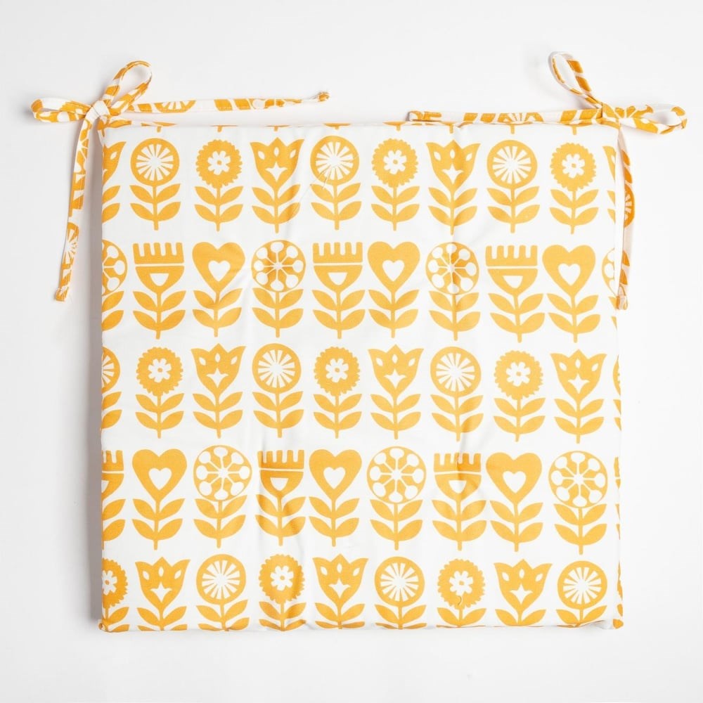 Декоративная сидушка на стул преобразит любой интерьер, сделает его ярче и интереснее, а также создаст комфорт и уют. Подушка подойдет для стульев, табуреток, уличных скамеек и качелей. Изделие имеет завязки, что позволит надежно ее зафиксировать на стуле. Сидушка станет отличным декором для мебели на даче, в саду, в кухне, гостиной и столовой. Рекомендации по уходу: Бережный режим глажки Не отбеливать