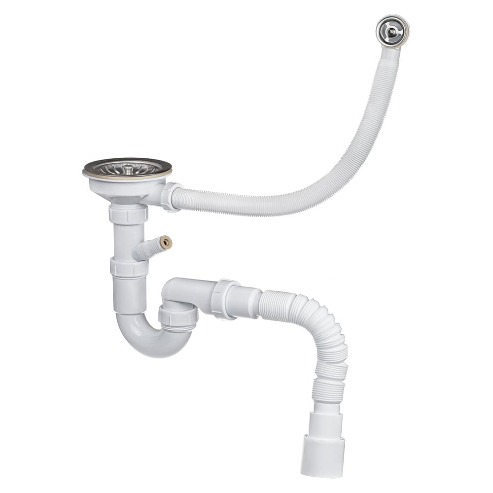 Сифон для выпуска 90-94 мм, 3.1/2x40, с нерж.решеткой, переливом, гофротрубой 40x40/50, дополнительным патрубком с отводом для с/м MasterProf ИС.110683 устанавливается в кухонные мойки с диаметром выпускного отверстия 90-94 мм. Выполнен сифон из первичного полипропилена, что гарантирует высокую прочность, надежность и долговечность изделия. Минимальная и максимальная высота расположения сифона: 250-270 мм.Выгодно отличает данный сифон два комплектных патрубка - один обычный, второй с отводом для подключения сливных шлангов бытовой техники. Появление стиральной машины не станет неожиданностью. Штуцер отвода позволяет подключить сливные шланги 19 и 22 мм.