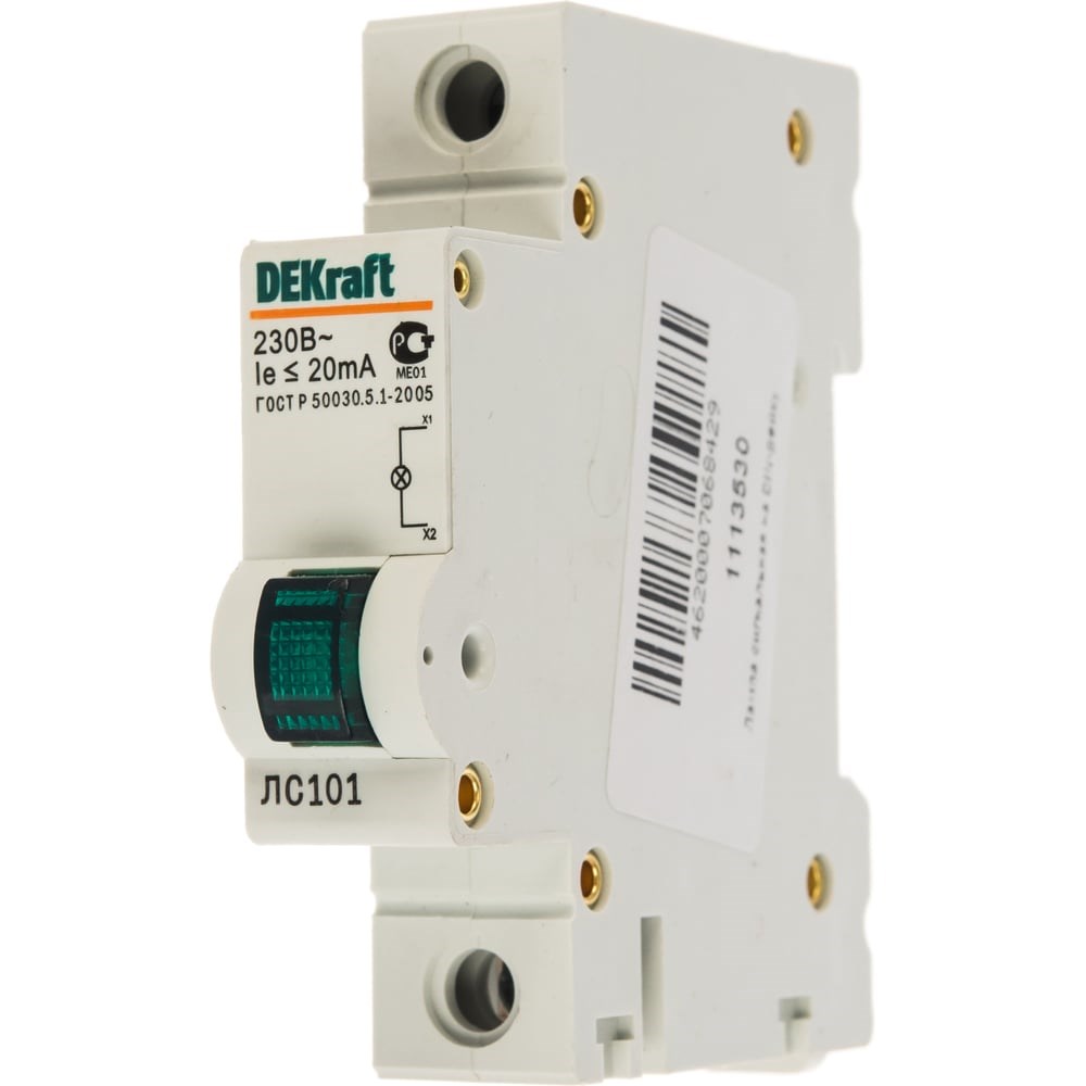 Лампа сигнальная серии ЛС-101 Dekraftзеленая, с LED-индикациейпотребляемая мощность - 0,5 Втширина – 1 модуль х 18 ммустановка – на DIN-рейкуустановочное положение – любоеЛампы предназначены для световой индикации состояния электрической цепи. Лампы применяются в сетях напряжением 220 В. Соответствует дизайну автоматических выключателей серии ВА-101.