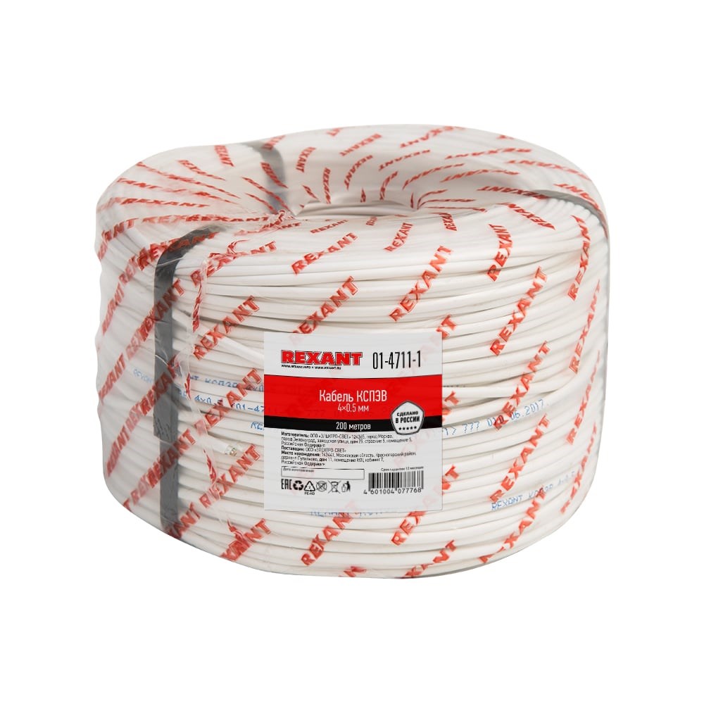 Сигнальный кабель КCПЭB REXANT 4x0,5 мм, бухта 200м 01-4711-1 предназначен для монтажа систем связи и сигнализации, телекоммуникации, управления и сбора данных для одиночной стационарной прокладки в коллекторах, тоннелях, зданиях, помещениях при отсутствии механических воздействий на кабель, в т.ч. в условиях повышенных электромагнитных явлений или при повышенных требованиях к безопасности кабельной системы. Кабель эксплуатируется при напряжении до 145 В переменного тока в диапазоне частот до 50 Гц или 200 В постоянного тока. ТУ 27.32.13-006-39644825-2020. Требования безопасности в соответствии с ГОСТ 31565-2012. Токопроводящие жилы - однопроволочные из медной мягкой проволоки. Изоляция - токопроводящая жила изолирована полиэтиленом высокого давления. Скрутка - параллельно расположенные изолированные жилы или скрученные пары образуют сердечник кабеля. Экран - в кабеле КСПЭВ поверх сердечника продольно накладывается экран из ламинированной алюминиевой ленты. Под экраном прокладывается контактная медная луженая проволока. Оболочка - поверх экранированного сердечника накладывается оболочка из поливинилхлоридного пластиката.