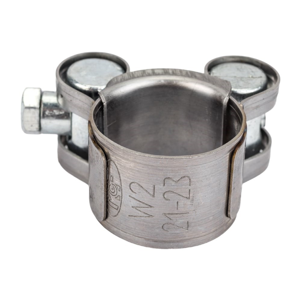 Силовой шарнирный хомут MGF 21-23, W2 1-2-18-2-21-23 выполнен из нержавеющей стали. Предназначен для использования в тяжелых условиях эксплуатации – в глубоком вакууме, при температурных перепадах, пульсирующих силовых нагрузках и высоком давлении. Нержавеющие хомуты применяются для крепления толстостенных и армированных патрубков и хомутов. Отличительной особенностью хомутов является их виброустойчивость и устойчивость к коррозии. Хомуты по всем основным показателям являются аналогами силовых крепежных элементов Robust. Дополнительные технические характеристики: Материал ленты - нержавеющая сталь AISI 430/AISI 201. Материал шарнира и болта - оцинкованная сталь, болт класса 8.8 ГОСТ 28191-89, DIN 3017-3