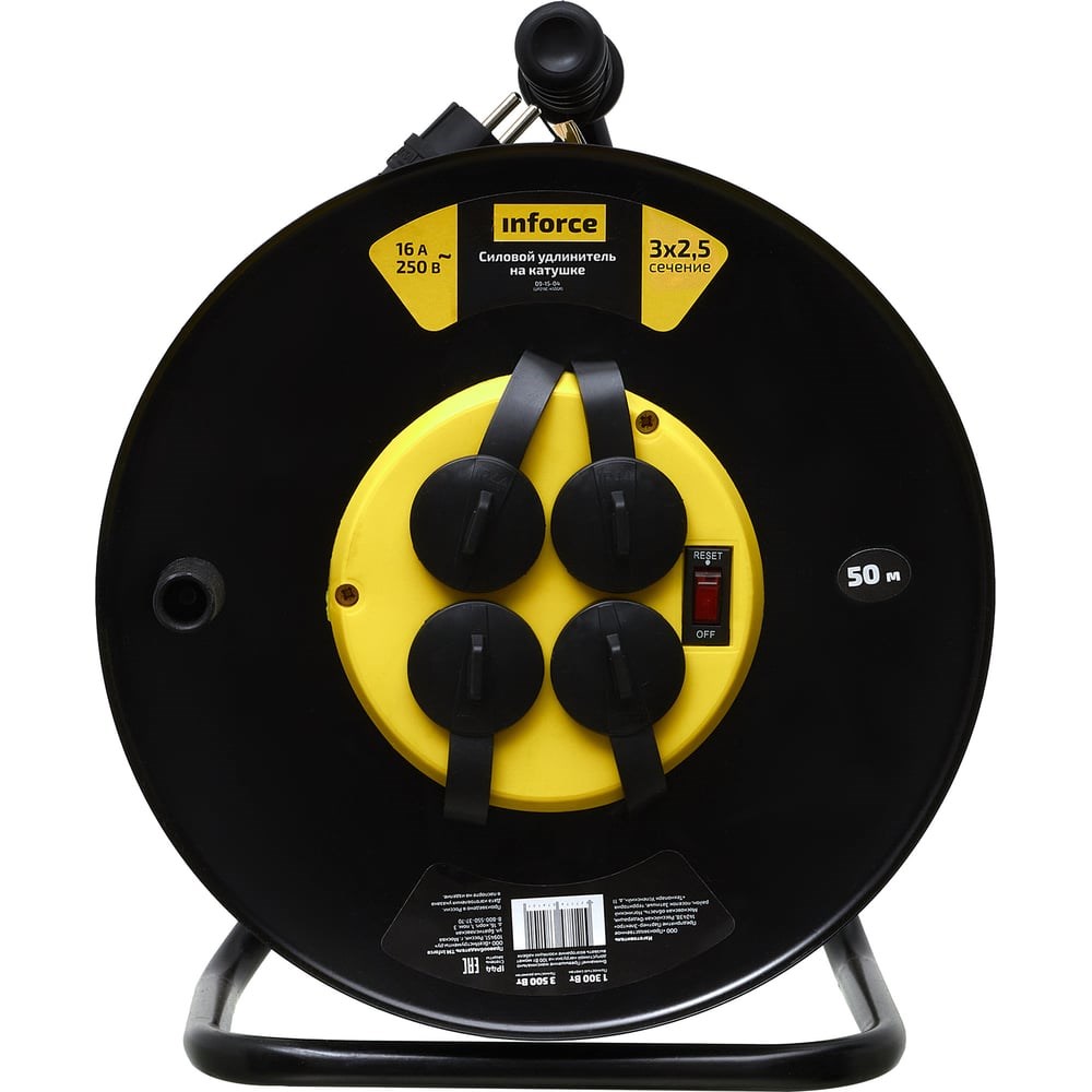 Силовой удлинитель на катушке Inforce 4 гнезда, с/з КГт 3х2,5 16A 50м IP44 GRANITE ZG 09-15-04 предназначен для использования в тяжелых условиях. Удлинитель можно применять на стройках, на производстве, а так же на открытом воздухе. Кабель изготовлен по ГОСТ 31223-2012. Морозостойкий кабель типа КГ с сечением 3х2,5 мм² обеспечивает долговечность и устойчивость к механическим повреждениям. Металлическая катушка обеспечивает прочность и устойчивость конструкции. Удлинитель имеет степень защиты IP44 и может эксплуатироваться при температуре от -60 до +40°С. Защитные крышки на розетках предохраняют от попадания пыли и влаги, продлевая срок службы удлинителя. Термовыключатель добавляет дополнительный уровень безопасности, предотвращая перегрев. Заземляющий кабель защищает от поражения электрическим током.
