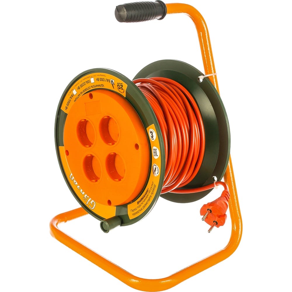 Силовой удлинитель на катушке GLANZEN 4 гн. ПВС 2х0,75
